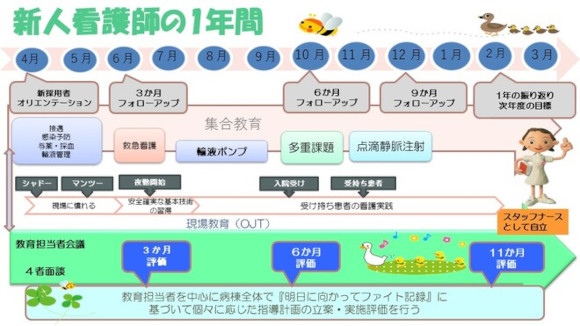 看護部では、新人看護師のサポートをチーム全体で行っていきますので、確実に成長することができます。急性期看護から慢性期、回復期、緩和ケアと、幅広い看護の専門的な知識や技術を習得できる環境が整っています。新人看護師だけではなく、継続してキャリアアップできる教育体制と、キャリアを継続しやすい充実した福利厚生があるので、看護師として長く働き続けやすい環境です。