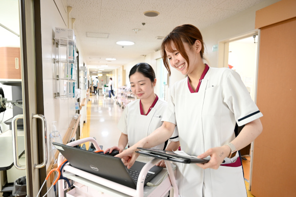 看護部では、時代や地域のニーズに柔軟に対応できる看護師を育成しています。新人看護師を「さくらナース」と呼び、チーム全員で新人看護師を育てています。2年目以降も卒後年数に合わせた院内研修で、看護師としての知識や技術を磨けるように支援しています。充実した教育環境はもちろん、看護師寮・24時間保育所など福利厚生も充実しており、働きやすい環境です。