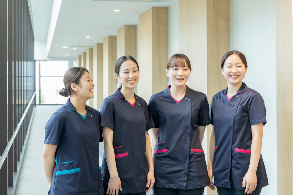 看護部では、急性期の治療を終えた患者さまが安心して地域・在宅へ戻る過程を支援しています。他職種連携を大切にしてチームで患者さまの思いに寄り添い、心身ともに機能回復・維持できるように看護を提供しています。個々のペースに合わせた指導・教育体制で、お互いを思いやりながら働きやすい職場環境づくりに取り組んでいます。私たちと一緒に地域包括ケアシステムの一翼を担い、スキルアップを目指していきましょう!