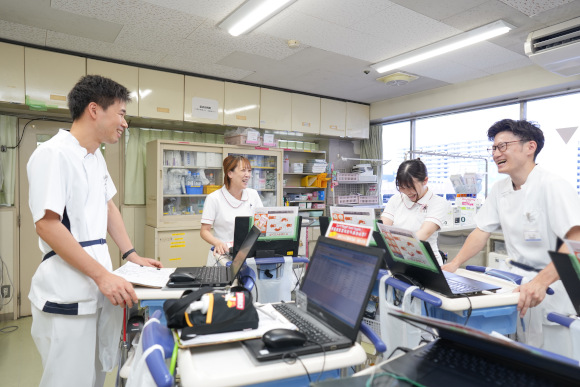 看護部の新人教育では、一人ひとりに合わせて教育プランを組んで実施しています。秋ごろから夜勤シミュレーションを行い、個々の業務の習熟度に応じてゆっくりと夜勤を開始していきます。チームワークが良く、先輩看護師に質問しやすい当院で、一緒に歩みを進めていきましょう!