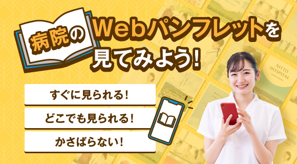 病院の資料は、紙のパンフレットと、スマホがあれば閲覧できるWebパンフレットの2種類があります。紙のパンフレットは発送から手元に届くまで3日~1週間程度かかりますが、Webパンフレットは請求後すぐにどこでもスマホで閲覧できるので便利です。