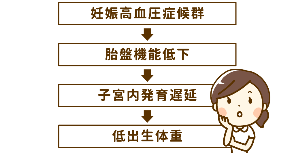 妊娠高血圧症候群、低栄養、喫煙、多胎妊娠、感染